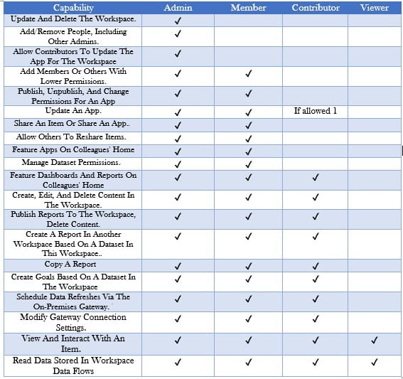 • You are required to have ‘Build Permission’, if you want to copy or create a report with your workspaces based on a dataset. People who are assigned to the roles of Admin, Contributor and Member automatically get the ‘Build Permission’ since it comes along their workspace role.