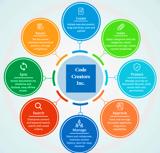 At Code Creators Inc. we provide you with a separate overview of the project at an intranet level while also developing role-based access for people. With SharePoint, you can easily keep track of your projects; for instance, by tracking their blueprints, project schedules, resources, deadlines, client reviews, design planning, and real-time updates.